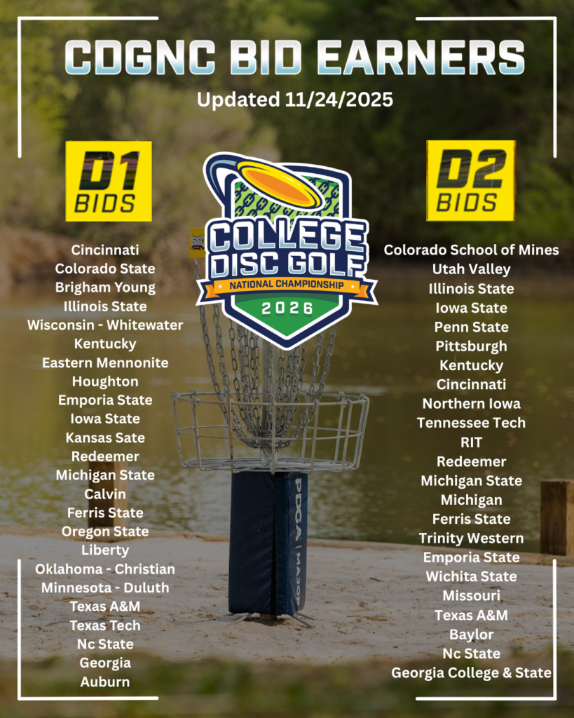 Step back into the excitement of last year’s Nationals with our full event gallery. From clutch putts to team celebrations, these photos capture the spirit of college disc golf at its highest level. Browse through highlights of unforgettable rounds, championship moments, and the community that makes this event so special. Whether you were there in person or cheering from home, this gallery showcases the passion, sportsmanship, and energy that define the College Disc Golf National Championship.